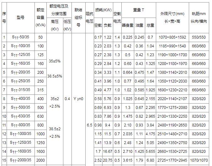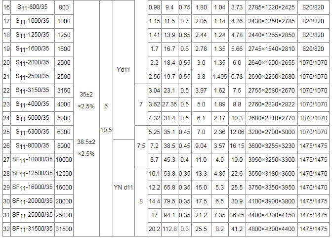 SF11、S11無(wú)勵(lì)磁調(diào)壓系列(35KV級(jí))技術(shù)數(shù)據(jù)